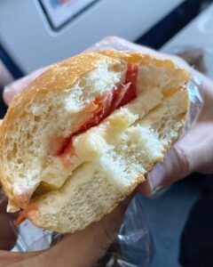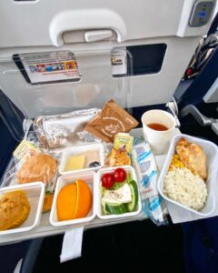 3. UZBEK AIRWAYS SERVES FOOD: Depending on the time of your flight, Uzbekistan Airways serve full meals, drinks, as well as snacks. We flew morning so we got a full rice meal (choice of chicken or beef only) served with lighter food like samsa, salad, cheese & sausage, fruits, & cupcake (Uzbek but make it foreigner-friendly). It’s roughly an 8hr flight so we got a 2nd round of snacks on the 2nd half of the flight, which was a cheese & tomato bun sandwich and apple juice. Drinks are generously served in-flight too: choice of traditional Uzbek wine, coffee/tea, fruit juice, or water. The food is definitely filling enough.